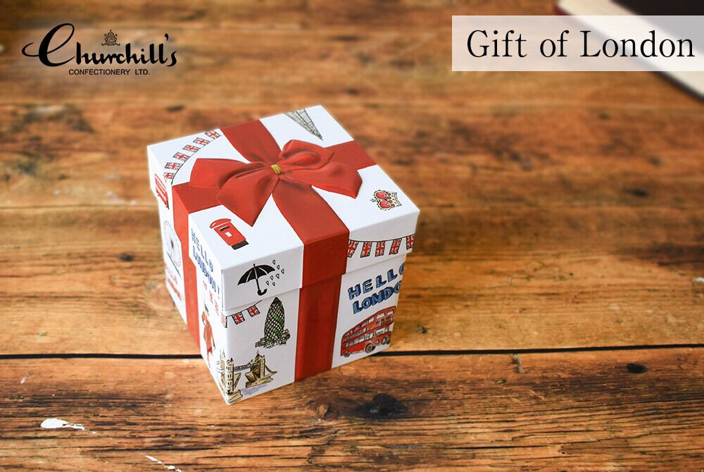 ロンドンの象徴的な建物などを散りばめたギフト缶。中にはクロテッドクリームファッジが入っております。